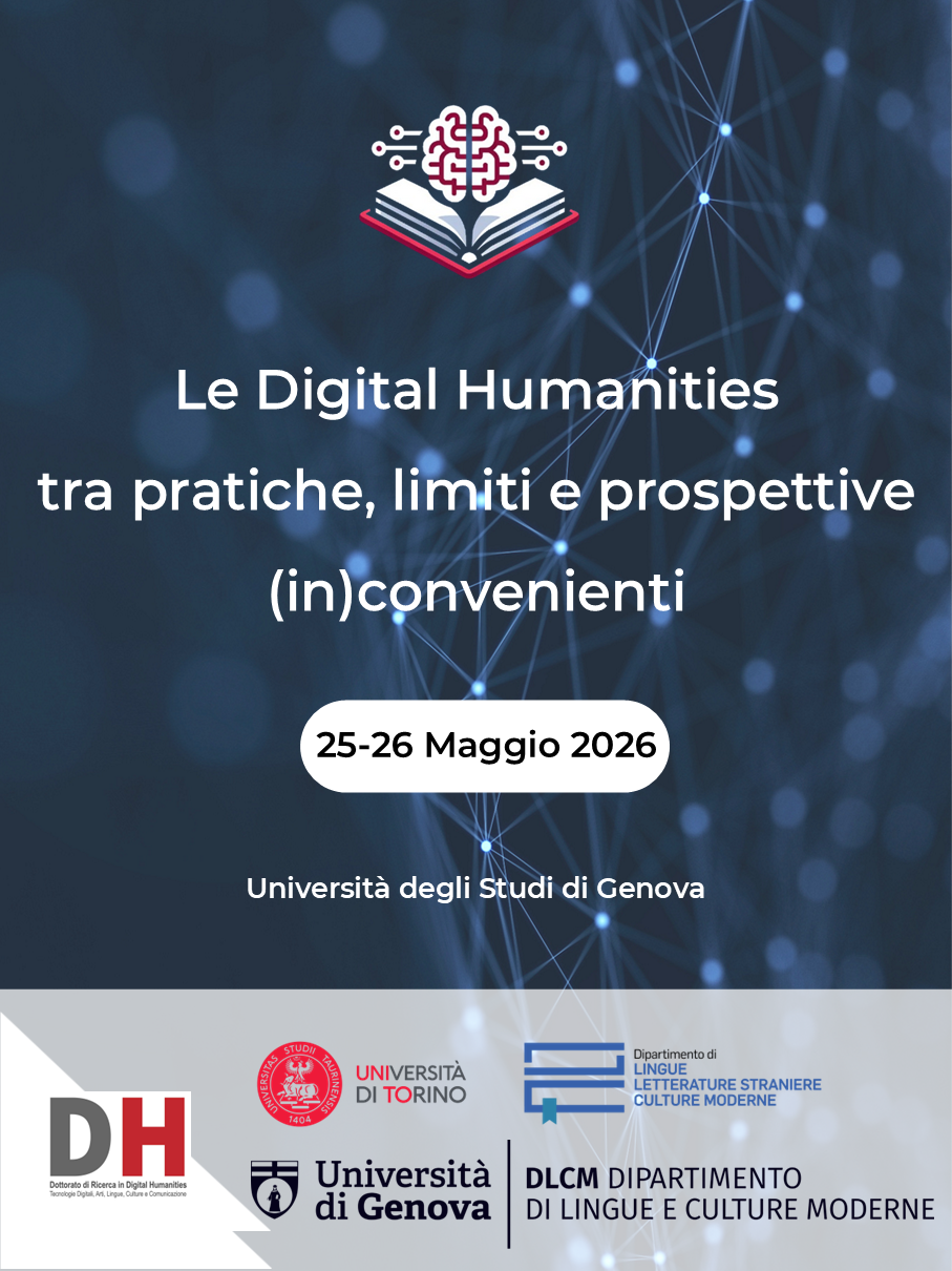 Il Dottorato in Digital Humanities delle Università di Genova e Torino organizza il Doctoral Symposium 2026 “Le Digital Humanities tra pratiche, limiti e prospettive (in)convenienti”.