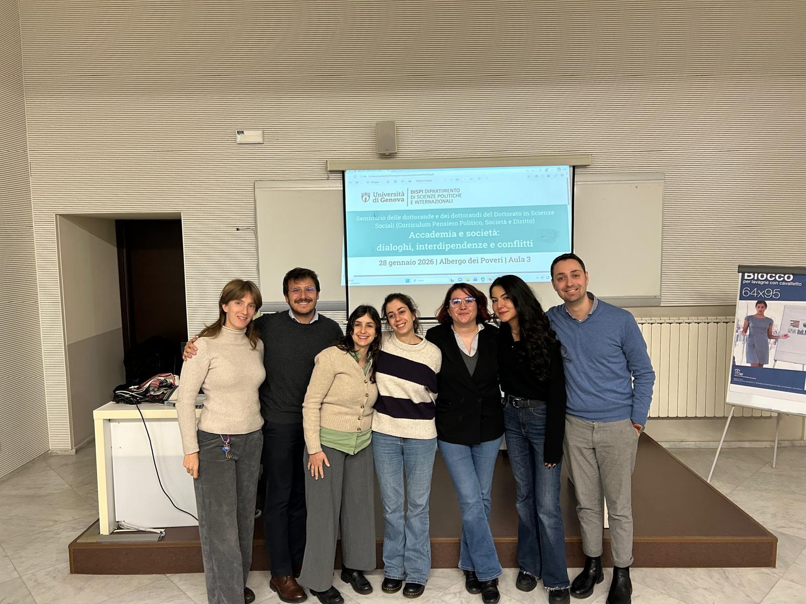 Si è svolta il 28 gennaio 2026 la seconda edizione del seminario del curriculum "Pensiero politico, società, diritto" del corso di dottorato in Scienze sociali attualmente attivo al Dipartimento di scienze politiche e internazionali - DiSPI, coordinato da Laura Carpaneto, docente UniGe di Diritto dell'Unione Europea.